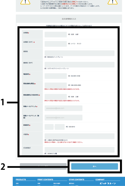 1.ご注文者さまの情報を入力して【次へ】をクリック
