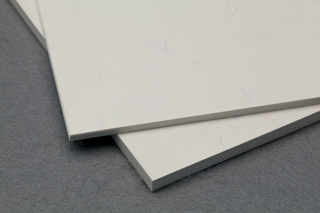 ミラーコート 220kg表面は優れた光沢感とツヤが特徴的。裏面は上質紙の塗工紙。強いコシがある。ミラーコート180kgよりも厚みがある用紙。 |