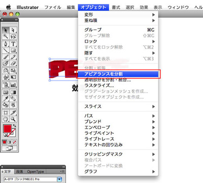 アピアランスを分割していないと、データと違うものが印刷される場合がございます