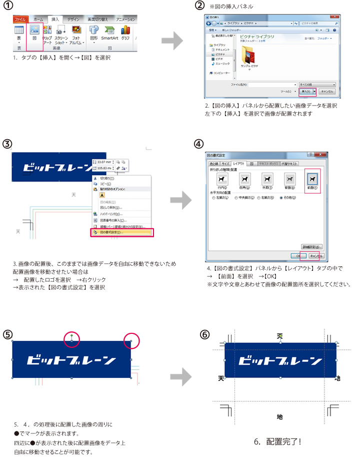 写真や会社のロゴマーク等を配置方法について
