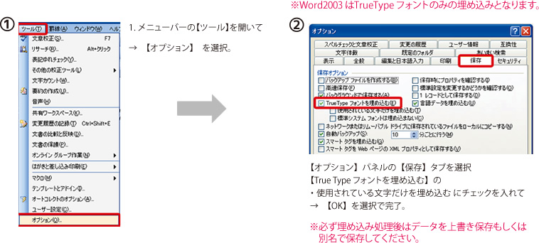 【フォントの埋め込み】